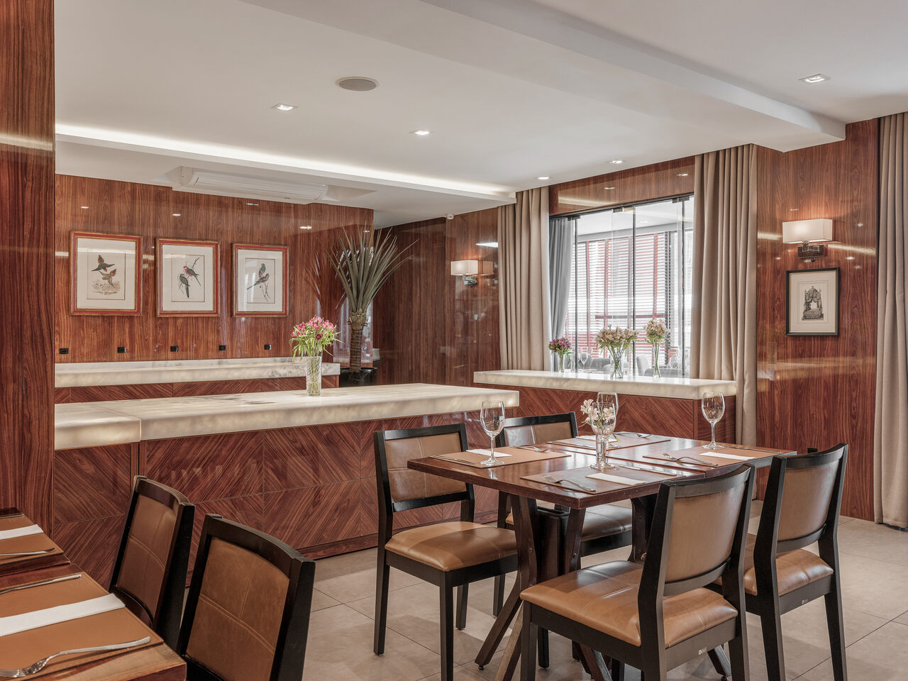 Com um ambiente sofisticado e acolhedor, o Restaurante Faial é o cenário perfeito para experiências gastronômicas inesquecíveis no coração de Florianópolis. Projetado para receber com excelência, o espaço acomoda confortavelmente até 100 pessoas em almoços e jantares — sejam eles corporativos ou sociais — e até 130 convidados em formato de coquetel. O requinte presente em cada detalhe e o conforto do nosso mobiliário de alto padrão elevam o nível da sua recepção na capital catarinense.